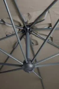 Sklopivi baštenski suncobran Galileo SCOLARO za ugostiteljske i hotelske bašte, ima bočni stub suncobrana. Suncobran Galileo se zatvara iznad stola. Ima metalni okvir sa sklopivim mehanizmom za zatvaranje suncobrana.