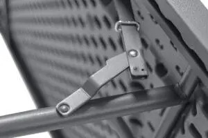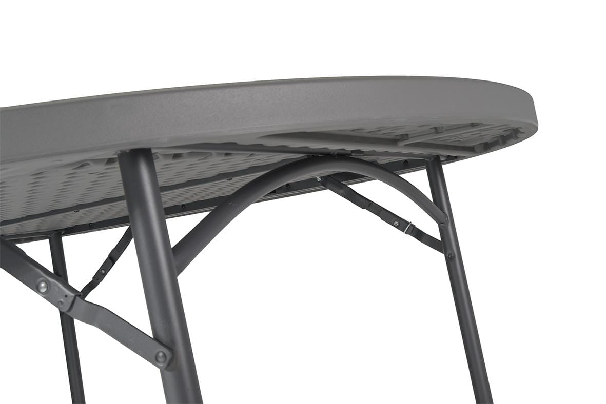 Materijal: Ploča stola je izrađena od nereciklirane plastike (100% HDPE), što garantuje visoku izdržljivost i otpornost na vremenske uslove. Metalna baza je dizajnirana za stabilnost i omogućava potpuno sklapanje u ploču stola radi lakšeg skladištenja.
