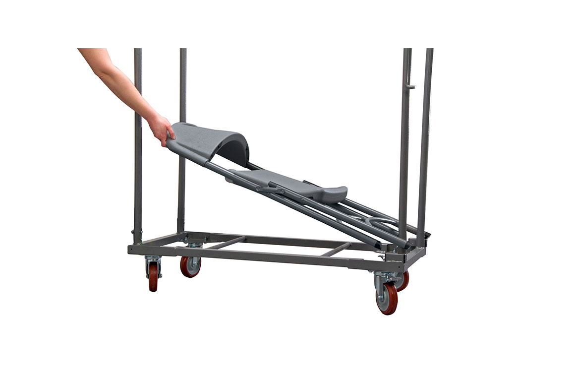 Opis: Kolica za stolice Aran ZOWN su transportna i skladišna kolica, dizajnirana za stolice Aran Standard Chair i Aran Chair Plus. Njihova robusna čelična konstrukcija osigurava pouzdanost pri svakodnevnoj upotrebi u profesionalnim okruženjima. Opremljena su vertikalnim osloncima koji osiguravaju stabilnost natovarenih stolica i sistemom za brzo zaključavanje i otključavanje vertikalnih oslonaca, što omogućava lako utovarivanje i istovarivanje. Kolica obezbeđuju optimalnu mobilnost sa četiri poliuretanska točka sa ugrađenim kočnicama, od kojih su dva fiksna i dva okretna.