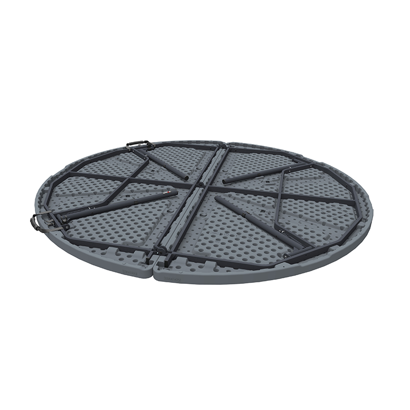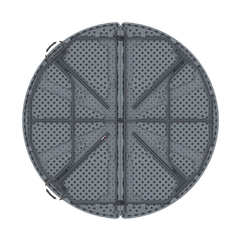 Opis: Sto Planet 200 ZOWN je dizajniran za profesionalnu upotrebu na različitim događajima u zatvorenim i otvorenim prostorima. Okrugla ploča prečnika 198,2 cm izrađena je od izdržljive plastike, što je čini pogodnom za zahtevne uslove upotrebe. Njegov dizajn omogućava sklapanje ploče na pola, što olakšava transport i skladištenje i omogućava prevoz u kombijima ili viljuškarima. Dve integrisane ručke omogućavaju dvema osobama sigurno i efikasno pomeranje stola.Materijal: Ploča stola je izrađena od 100 % čistog visokogustinskog polietilena (HDPE). Metalna baza je obojena prahom, što obezbeđuje dodatnu otpornost na habanje i stabilnost.Sertifikati: