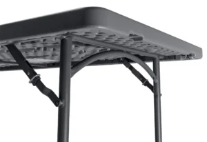 Opis: Sto Classic XL120 ZOWN je dizajniran za profesionalnu upotrebu na različitim događajima, gde je optimizacija prostora od ključnog značaja. Pravougaona ploča stola dimenzija 121,9 x 76 cm omogućava udobno sedenje za 4 osobe. Ergonomski dizajn obezbeđuje udobnost i za korisnike na čelnim stranama stola. Nova ručna blokada omogućava vrlo lako upravljanje, automatski klizni sigurnosni zatik sprečava neplanirano sklapanje.Materijal: Ploča stola je izrađena od visokogustinskog polietilena (HDPE), što obezbeđuje dužinu trajanja i dugovečnost. Metalna struktura je obojena prahom, što povećava otpornost na habanje i koroziju.Sertifikati: