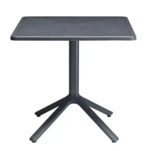 Opis: Cube 80 je kvadratni sto, pogodan za profesionalnu upotrebu na otvorenom. Ploča stola je izrađena od DurelTOP polipropilena s UV dodacima, koji osiguravaju ujednačenu boju i otpornost na vremenske uslove. Noge su kvadratnog oblika, izrađene od prašno lakiranog aluminijuma. Sto ima mat završnu obradu, podesive nogice za visinu i pogodan je za reciklažu.