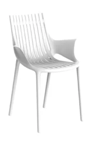 Opis: Ibiza Armchair je deo kolekcije Vondom, koju je dizajnirao Eugeni Quitllet. Inspirisana obalskim životom i prirodnim oblicima, ova fotelja kombinuje eleganciju sa ekološkom svešću. Izrađena je od polipropilena ojačanog staklenim vlaknima, dobijenog gasnim kalupovanjem, što obezbeđuje trajnost i otpornost na vremenske uslove. Stolica je pogodna za unutrašnju i spoljašnju upotrebu i omogućava jednostavno održavanje.
