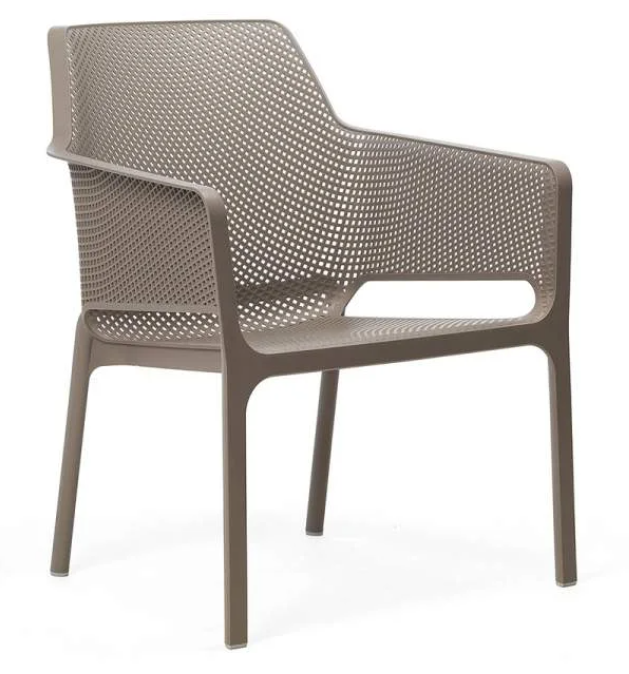 Baštenska stolica Net Relax sa naslonom za ruke, izrađena od polipropilena ojačanog staklenim vlaknima, dizajnirana za spoljašnju upotrebu